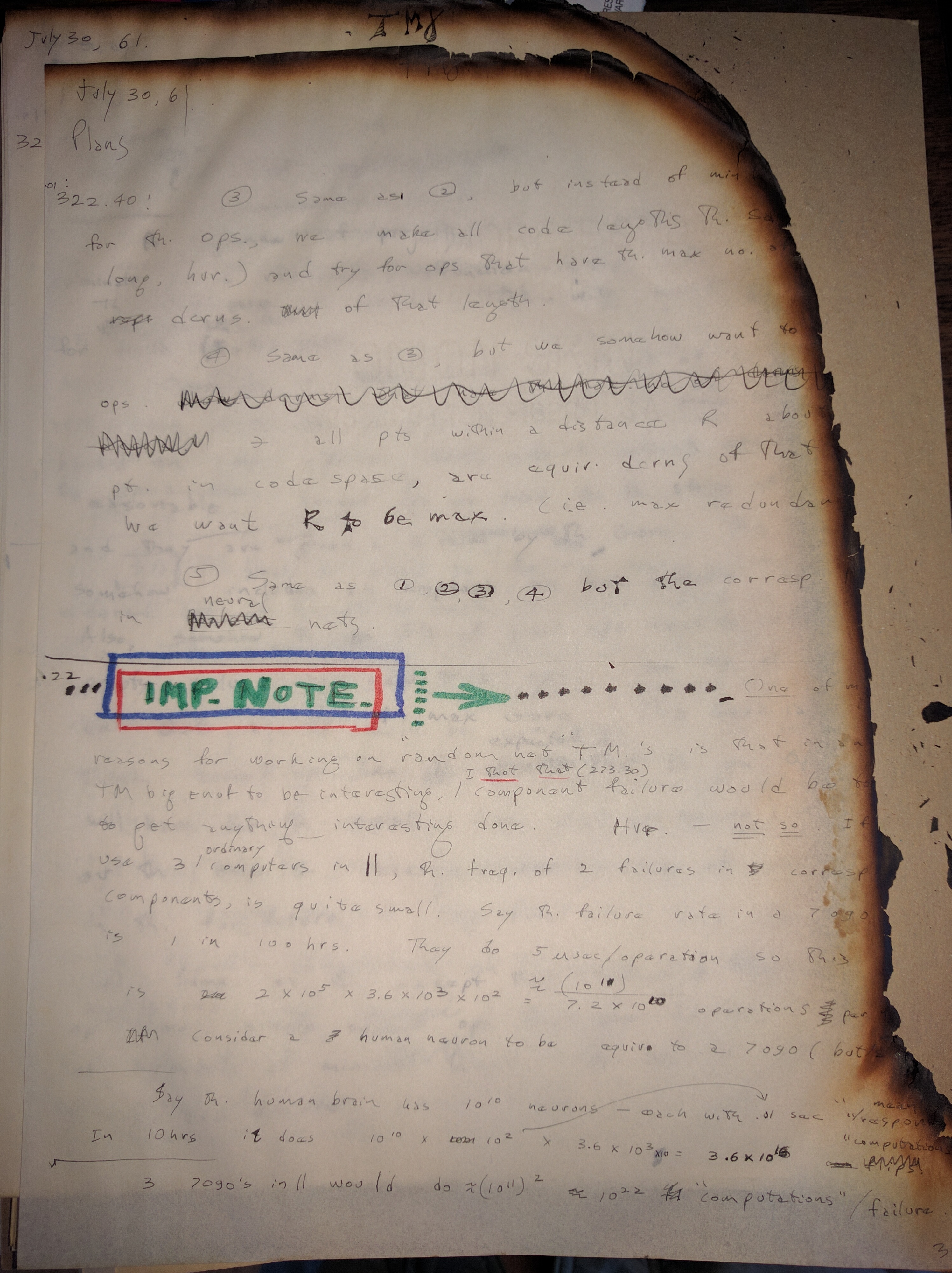 - 101-291 : Notes for talks, includes notes about minimal coding in 1959