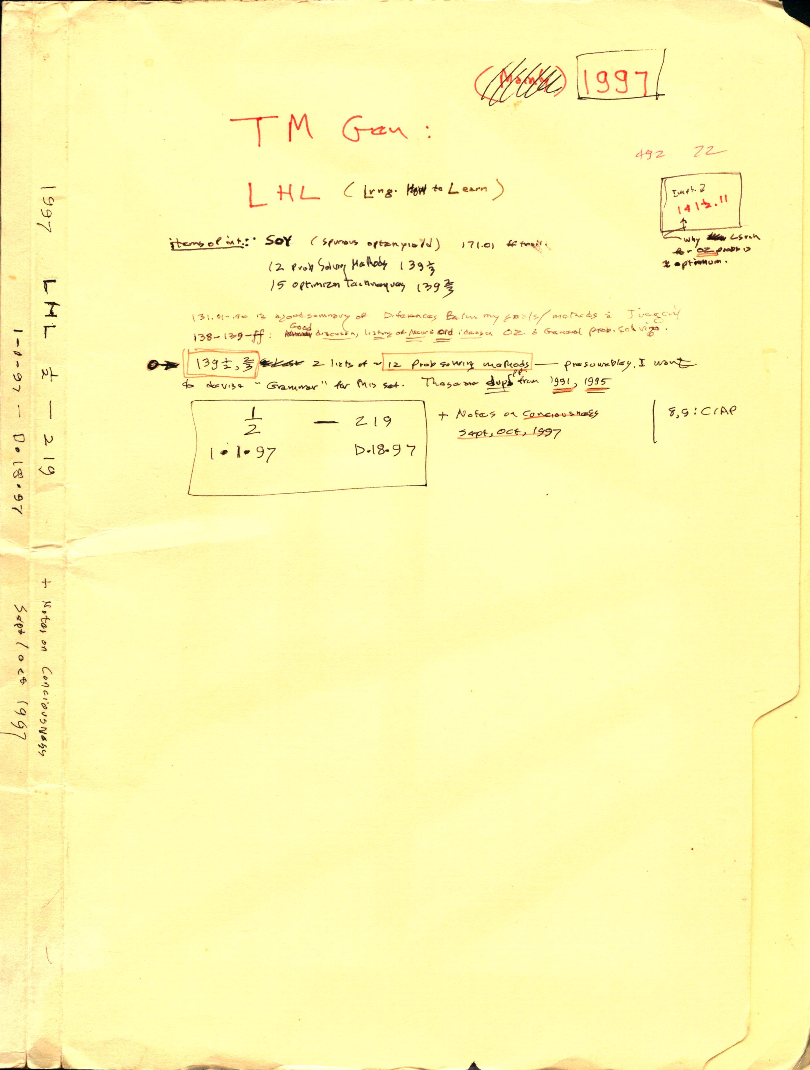 - cover : Folder Cover 1997: Learning How to Learn, consciousness, general notes